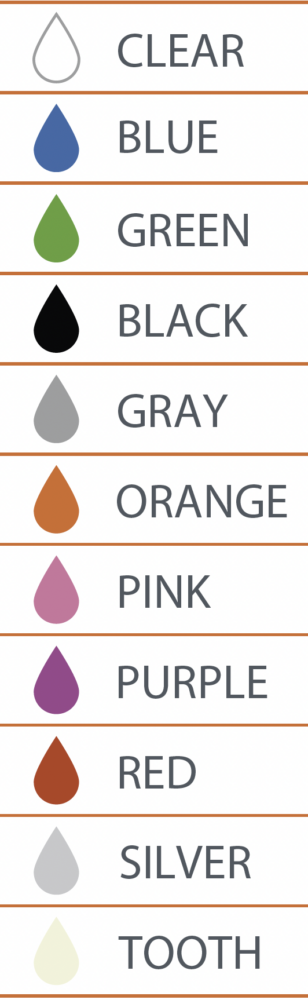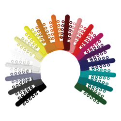 Le legature sono disponibili in 21 colori e presentano un diametro interno di 1,3 mm (0,051″), un diametro esterno di 2,95 mm (0,12″) e uno spessore di 0,9 mm (0,035″).